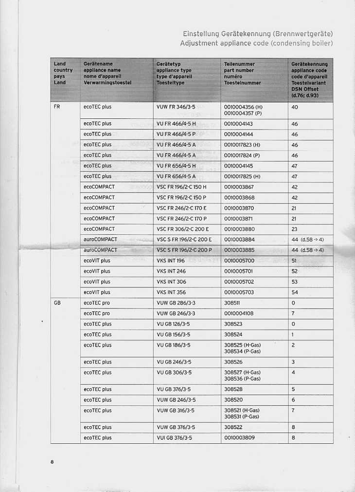 Because of the cost of new boards market is flooded with inexpensive reconditioned PCB boards. Unfortunately they do not always come with original Vaillant manual on how to set them up and the procedure can be tricky without a cheat sheet. Once you install new PCB your boiler will show F.70 fault code. Below is a copy of Vaillant PCB installation manual with DSN (Device Specific Number) offset number for boilers compatible with 0020132764 PCB.