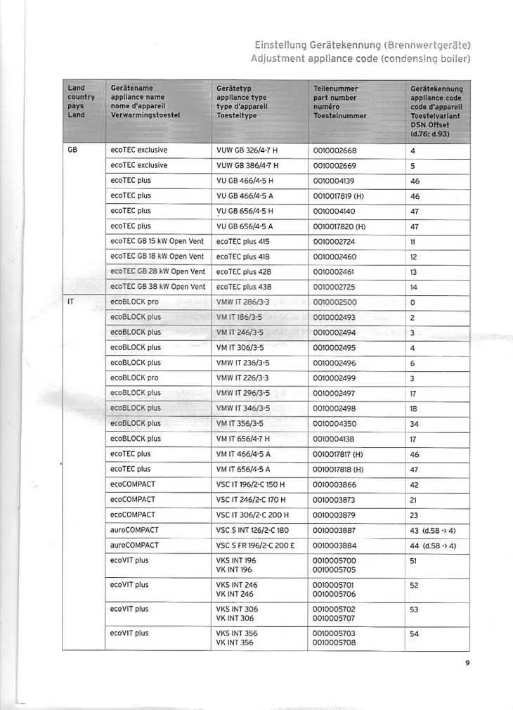When you replace Vaillant PCB you will have to adjust DSN (Device Specific Number) parameter for the boiler. Reason for that adjustment is the fact that entire original range of EcoTec boilers share one PCB. By adjusting DSN you pair your new PCB with your boiler. The same PCB will do all combination and system boilers from original Eco Tec range.