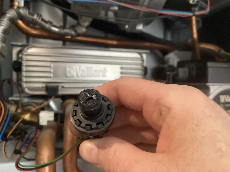 I removed the sensor (member the boiler needs to be drained down), and as you can see from the picture below it is fully blocked.